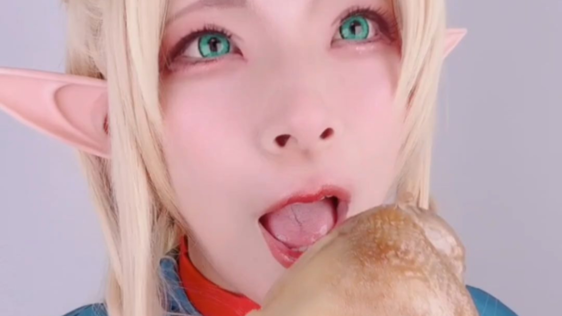 แมวสตรอเบอร์รี่เริ่มโลภเมื่อเห็นเพื่อนแมวกินน่องไก่ตัวใหญ่