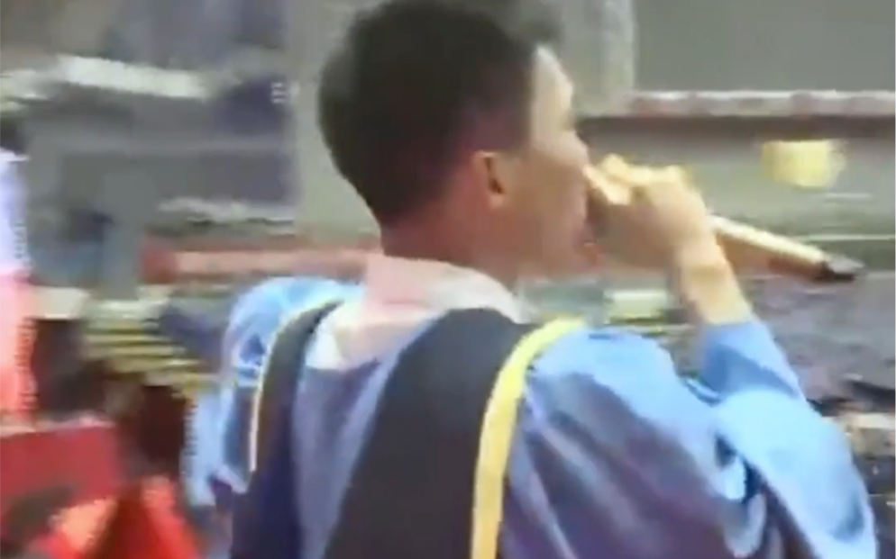 เต้นเพลง "กุหลาบหนาม" ในพิธีรับปริญญาชั้นมัธยมศึกษาปีที่ 3