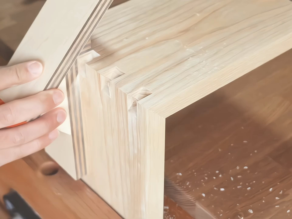 จอแสดงผลเทคโนโลยีลูกแมวช่างไม้ "เพดาน" ของช่างไม้ แสดงเดือยประสานสามด้านและเดือยร่วม
