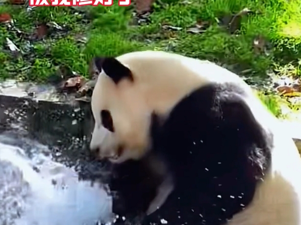 หลังจากที่เจ้าแพนด้าอาบน้ำสะอาดแล้ว พี่เลี้ยงก็เช็ดตัวให้มันจนแห้ง