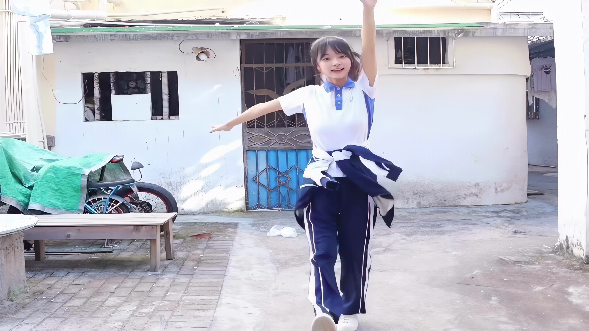 นักเรียนมัธยมปลายสาวเต้นแล้วดูมีพลังมากเลย
