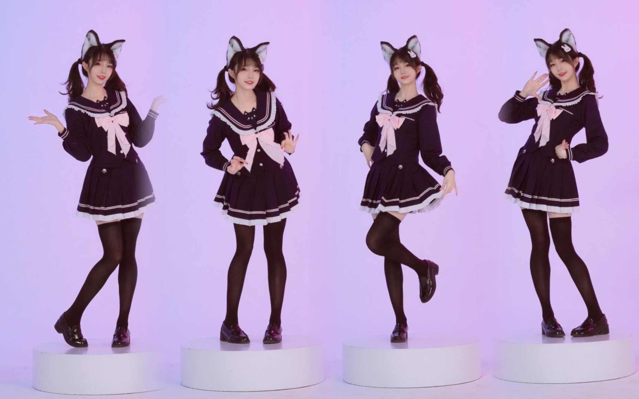 เต้นโอตาคุโดยสาวใช้หูแมวนุ่งถุงเท้าสีขาว