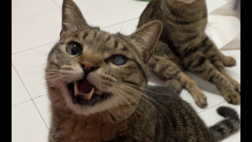 เมื่อฉันเลี้ยงนักรบผอมโซสองตัว พวกมันก็เริ่มแสดงโชว์ "แมวสองตัวหมุนรอบตัว" เพื่อขออาหารน่ะสิ...
