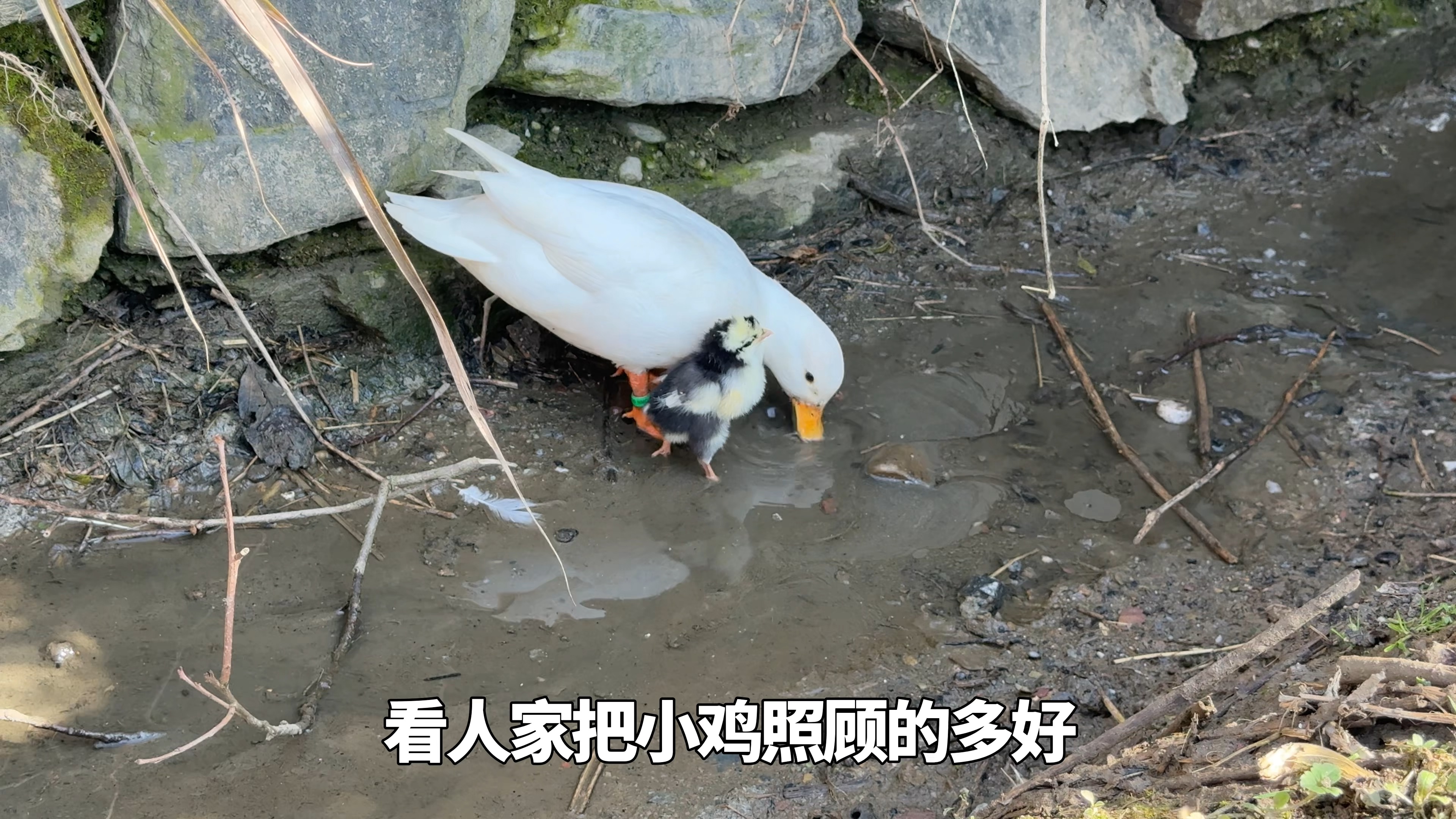 ลูกเป็ดปลอบแมวน้อยที่หาแม่ไม่เจอ