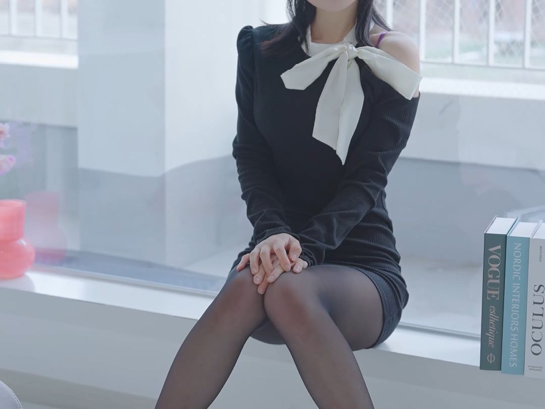 การแมตช์ชุดกระโปรงรัดสะโพกสีดำและสีขาวของพี่สาวฮีซอล
