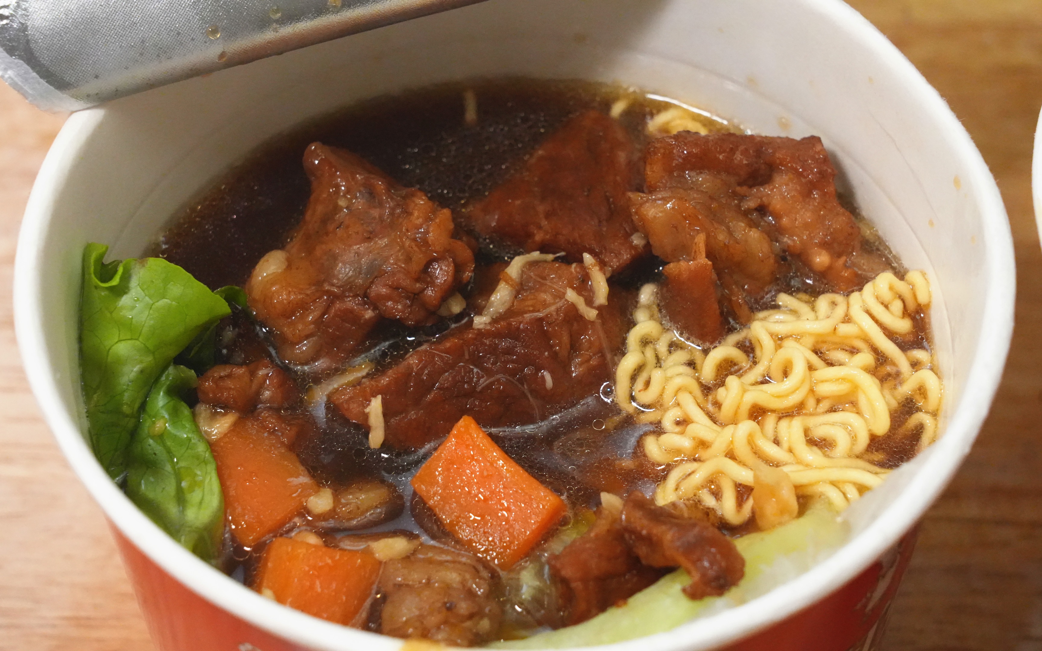 บะหมี่เนื้อตุ๋นแดง ไข่ดาว ไส้กรอกแป้งมัน เนื้อซี่โครงวัว ขนมเส้นเผ็ด ชิ้นไก่ทอด