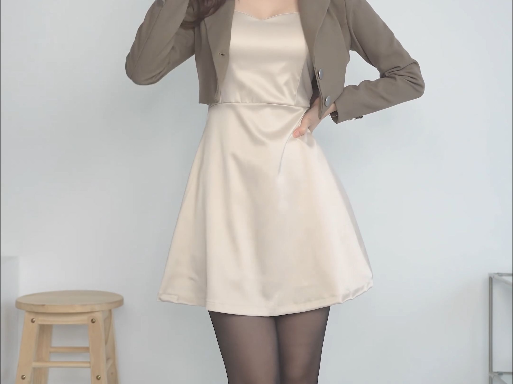 ประสบการณ์เสมือนจริงมุมมองบุคคลที่หนึ่ง: บันทึกกระบวนการแต่งตัวด้วยรองเท้าส้นสูงหนังแก้วสีดำสไตล์คาซ