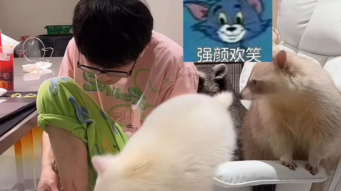 เมื่ออาหารถูกนำออกไป ท่าทางของแรคคูนก็สดใสขึ้น...