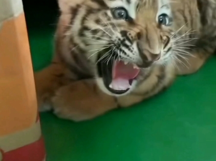 (สัตว์เลี้ยง) แม่เสือโคร่งอุ้มลูกที่น่ารักของเธอไว้ในอ้อมแขน