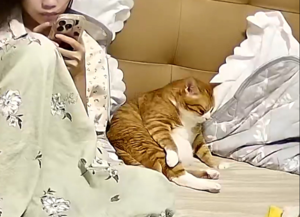 แมวที่หยิบขึ้นมาแข่งขันกับเด็กเพื่อหาหมอนและเติบโตขึ้นมา