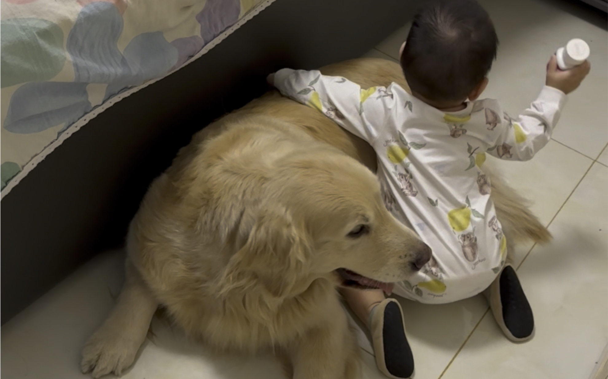 เจ้าโกลเด้นรีทรีฟเวอร์แนบตัวชิดท้องคุณแม่ที่กำลังตั้งครรภ์เพื่อฟังเสียงดิ้นของทารก ในวินาทีถัดมาสิ่ง