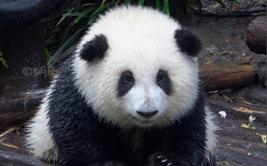 (แพนด้ายักษ์ฮวาฮวา) ฮวาฮวาสะบัดขนเร็วมาก พอสะบัดขนเสร็จก็มากินต่อ