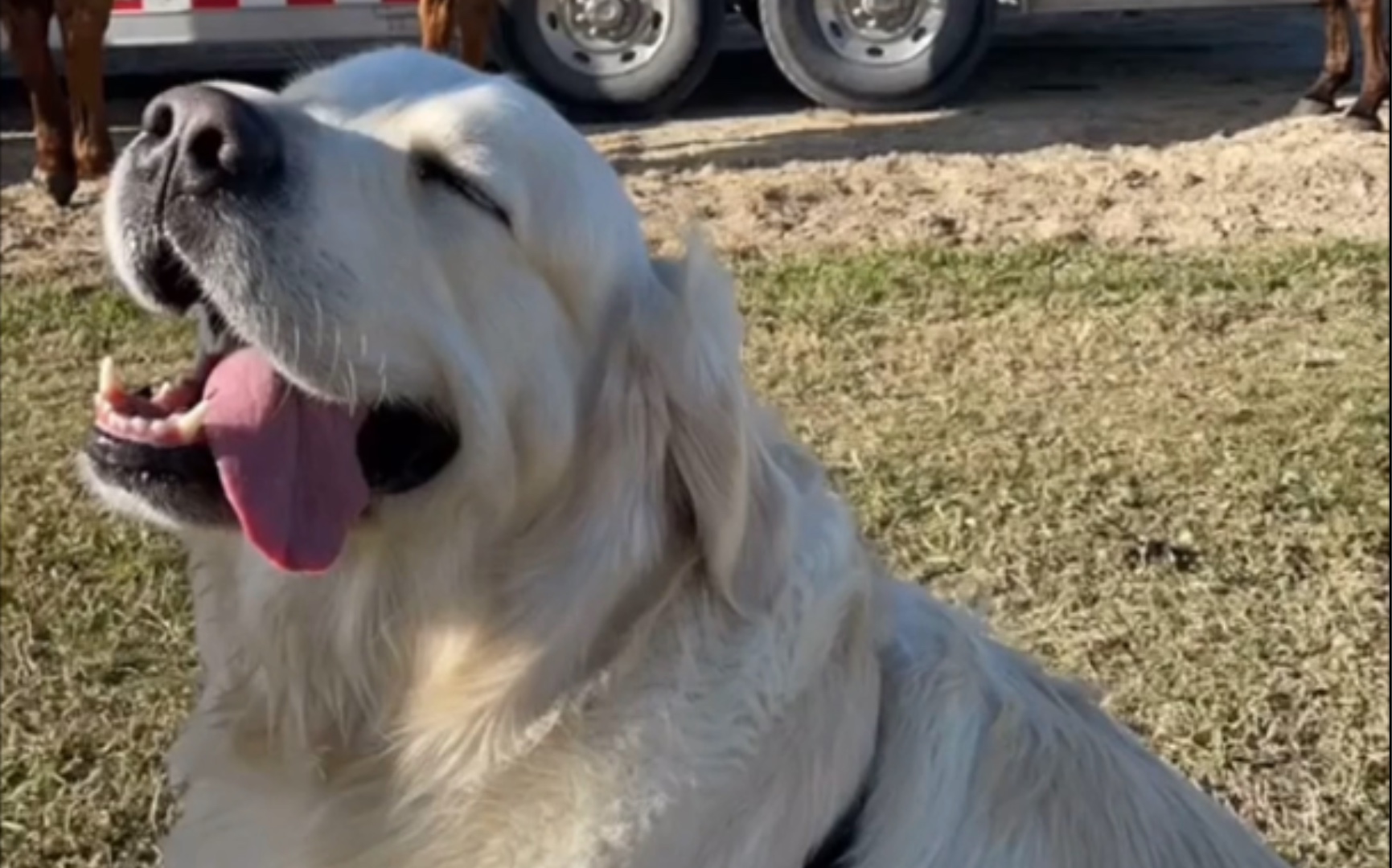 เด็กหญิงวัย 2 ขวบแอบไปเยี่ยมโกลเด้นรีทรีฟเวอร์ที่เพิ่งคลอดลูก ลูบไล้ลูก และกอดแม่สุนัขอย่างอ่อนโยน