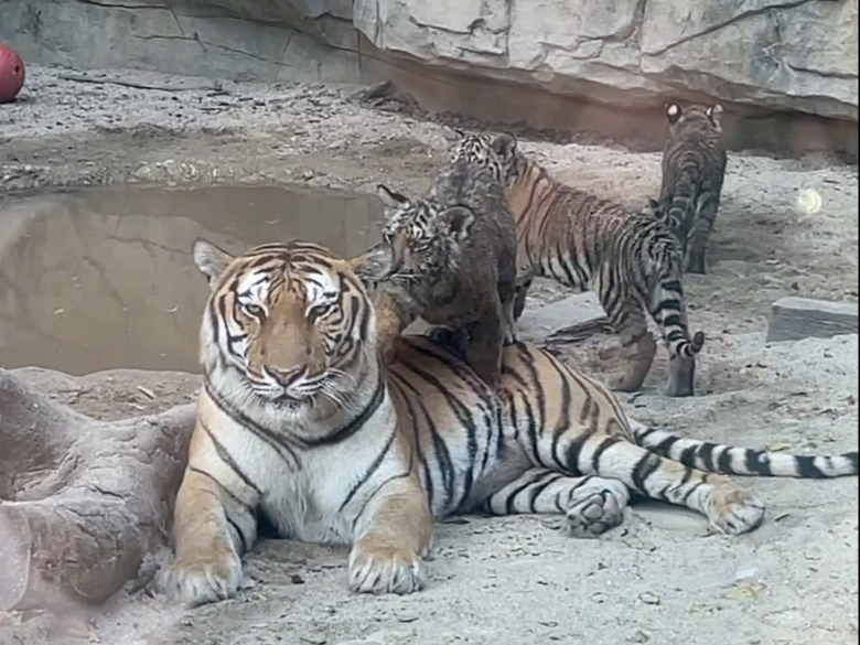 เสือพันธุ์ไซบีเรียพลิกอ่างหินขนาดใหญ่ด้วยแขนเดียว
