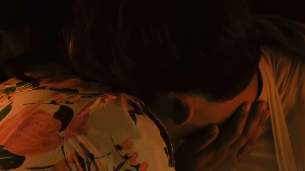 หญิงสาวกำลังให้นมลูก จู่ๆ ก็มีชายสองคนเดินเข้ามาด้านหน้า ภาพยนตร์เรื่อง “หนีไปให้ไกล”