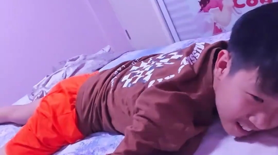 น้องชายนั่งบนเตียงนวดให้พี่สาว พอได้ยินว่าพี่สาวหิวน้ำก็รีบวิ่งไปหยิบผลไม้ทันที