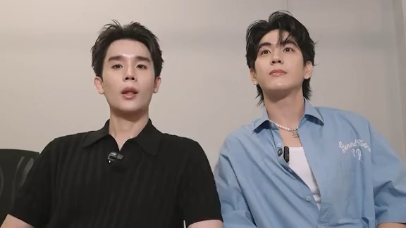 Day and bestie Gee hard at work 😆 #sea_tawinan #filmrachanun #jimmysea #forcebook #namtanfilm