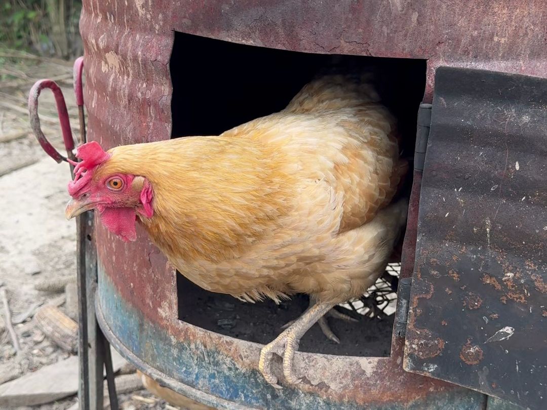 สายตาแสนสดใสของแม่ไก่ที่ขึ้นไปบนกำแพงทุกวัน