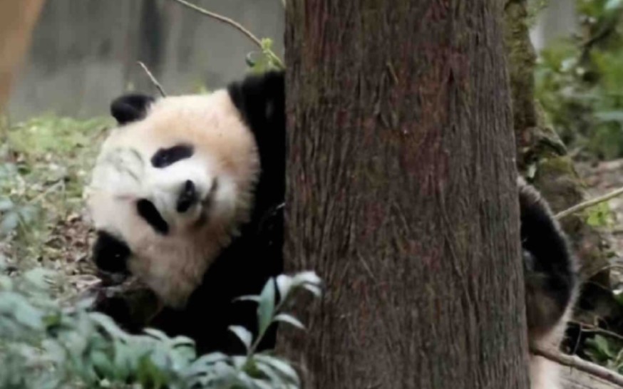 ร้องไห้ ในที่สุดเจ้าหมีแพนด้าเหอฮวาก็ปีนขึ้นต้นไม้แล้ว