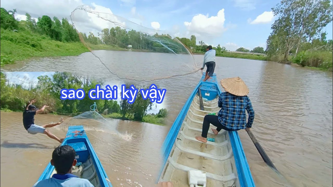 Tư và con trai sáng sớm đi chài cá dính thấy ham