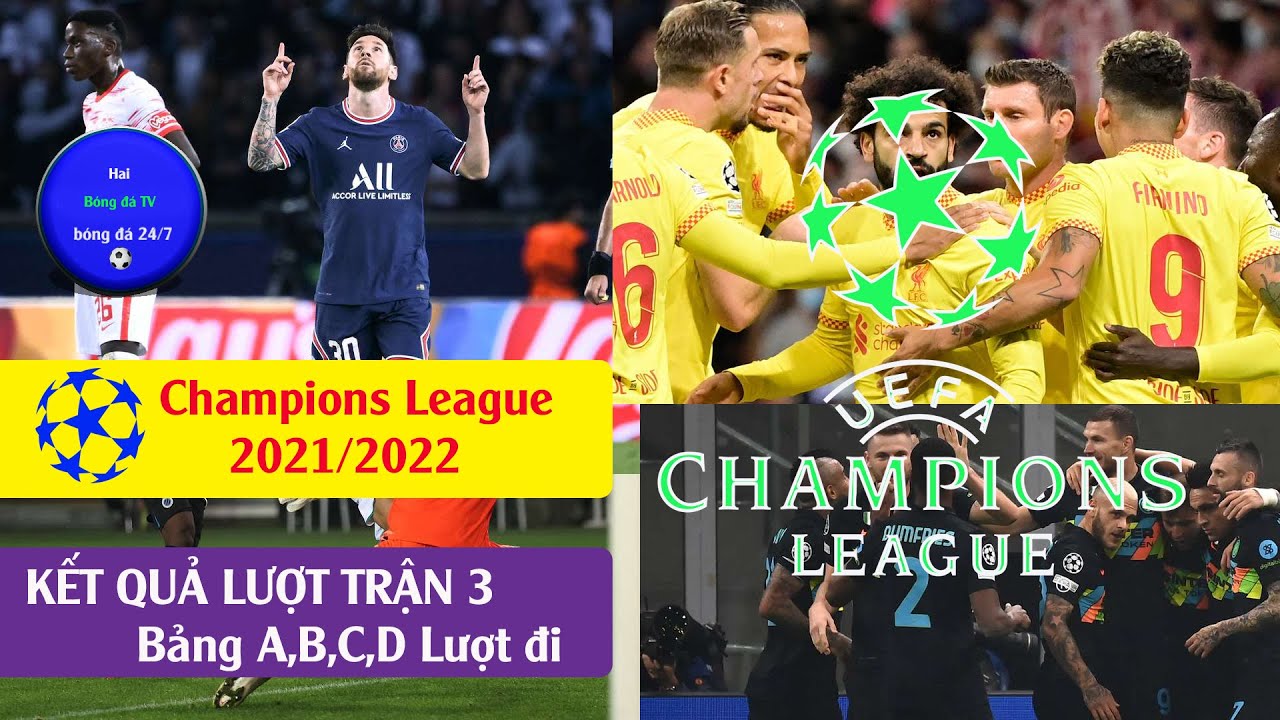 TIN BÓNG ĐÁ Kết quả cup c1 châu âu, Bảng xếp hạng A,B,C,D Lượt trận 1 I Champions league 21/22