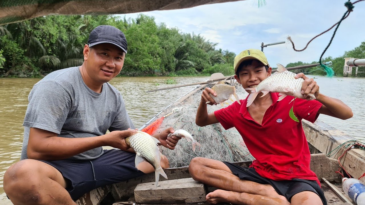 Mưa ngập nước 3 anh em bắt cá rô. Lẩu cá rô đồng - Bin Đen Miền Tây # 156