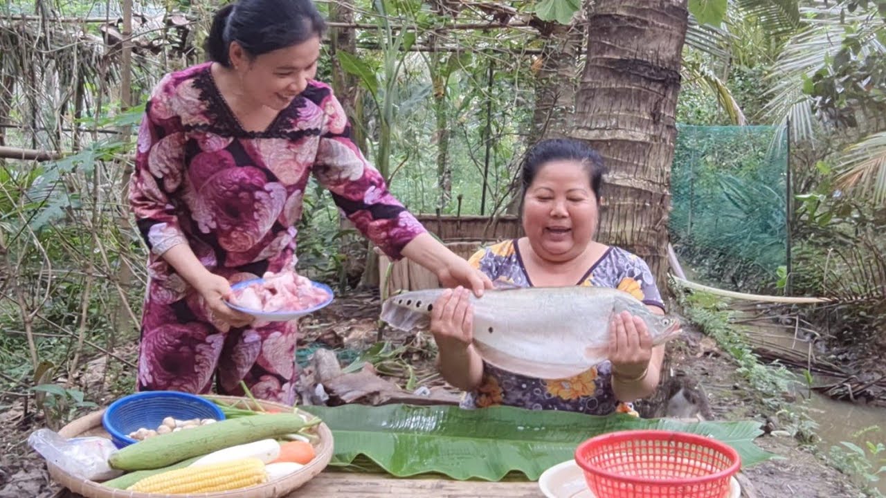 Khô Cá Dứa Nấu Canh Chua Bắp Chuối Ăn Ngoài Vườn Sạch Nồi Cơm| TKQ & Family T589