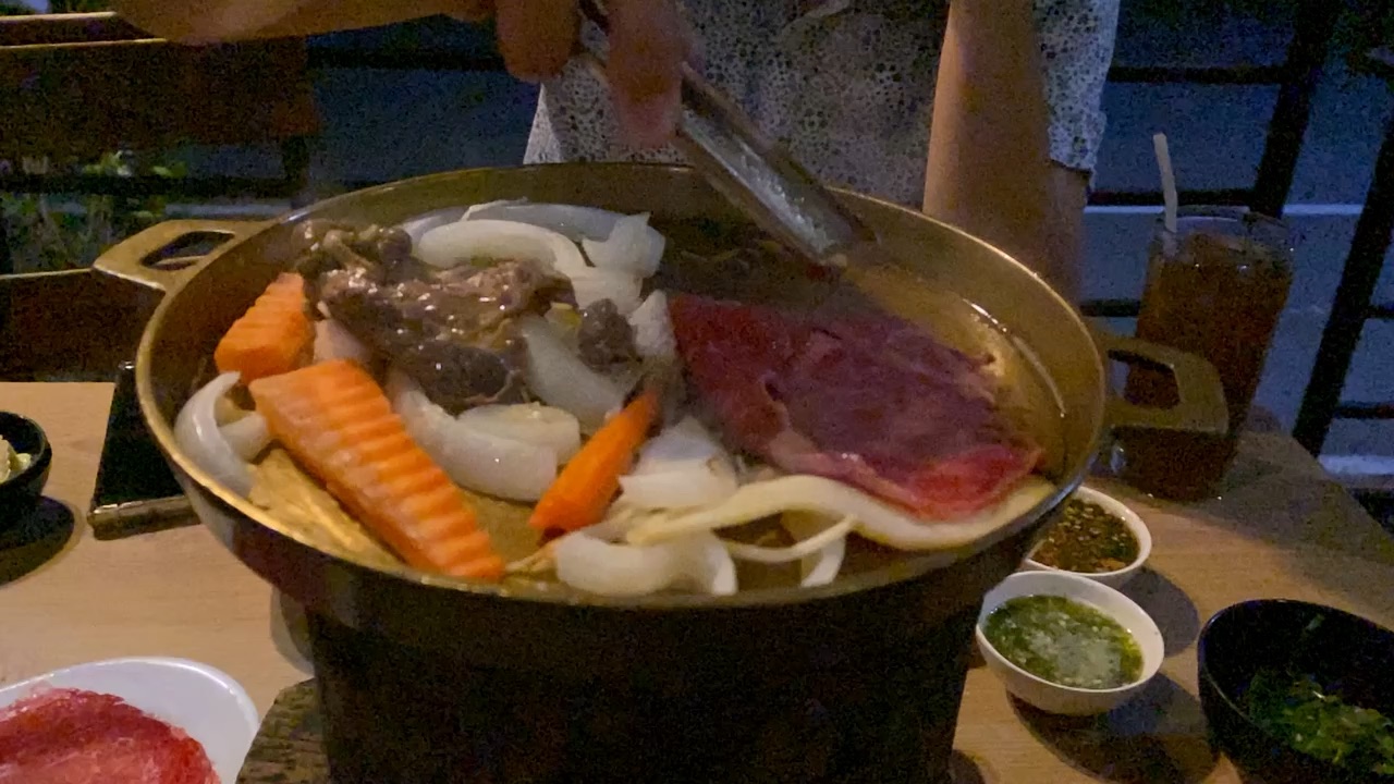 Người đàn ông tưởng khách bàn bên đã rời đi nên chủ động tiến lại lấy hết xiên nướng, ai ngờ lại gây