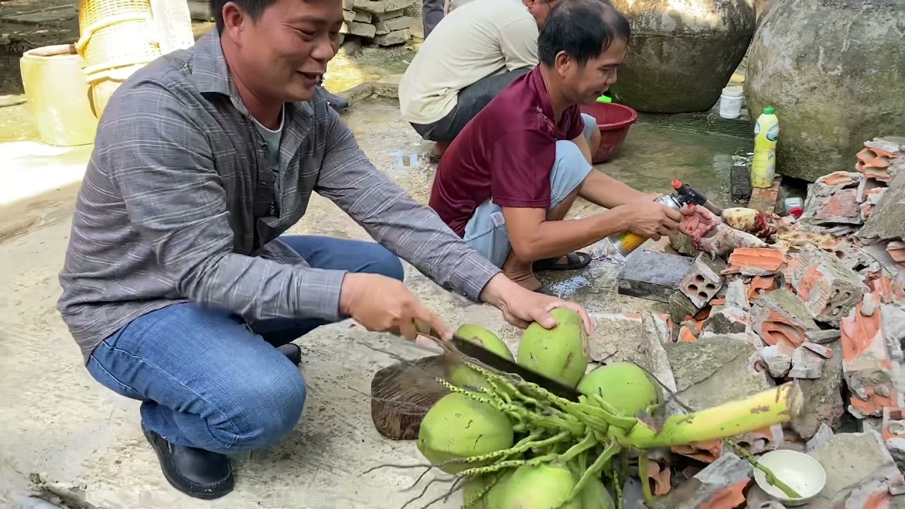 Kiểu ăn cơm đậm chất Miền Tây của các chú mỗi khi đi cất nhà cất cầu từ thiện