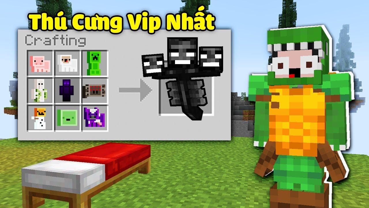 MINECRAFT BEDWARS, SỞ HỮU THÚ CƯNG HACKER VIP NHẤT ĐƯỢC TÁO VÀNG SỨC MẠNH 1 HIT TROLL NOOB TEAM