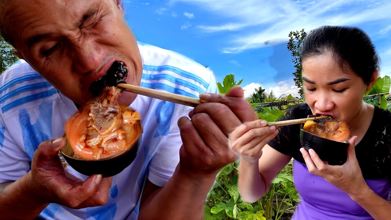 Thịt heo kho tàu bằng trái mít ngon quá anh ơi