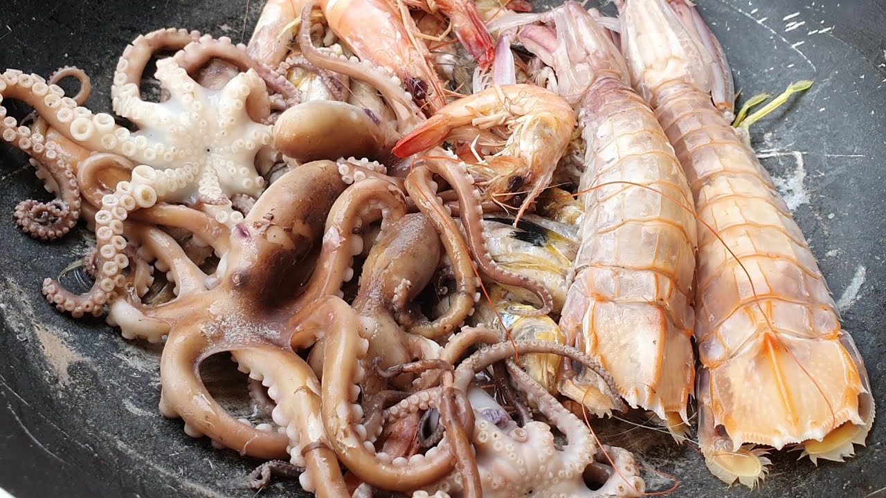 Đi biển bắt hải sản về làm món mực luộc ăn siêu ngon - Fishermen Eat Seafood