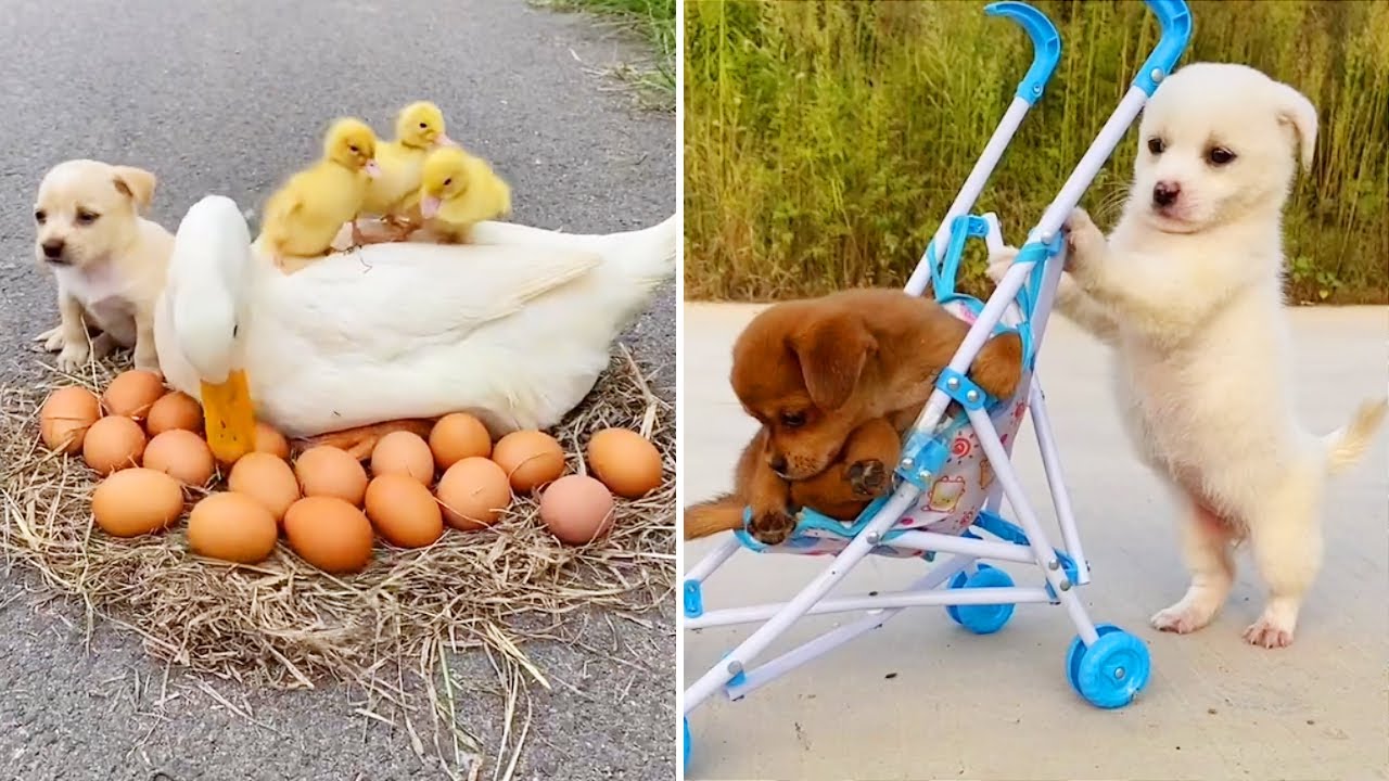 Chó con dễ thương sủa inh ỏi khi được tắm nắng Puppies Barking