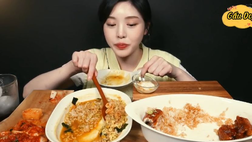 Udon kim chi, tôm chiên, thịt heo chiên xù phần cuối #mukbang