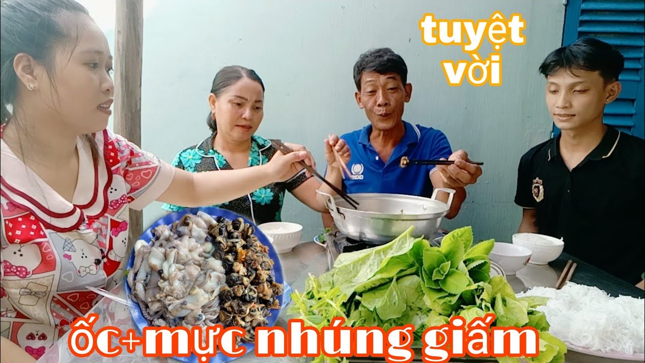 Tư Bắt Ốc Về Luộc Sả Chấm Muối Ớt Siêu Cay