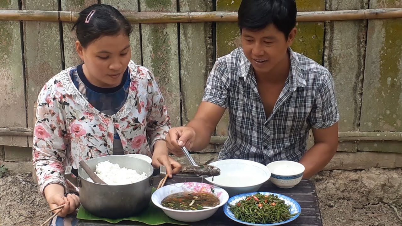 Làm Nồi Bún Nước Lèo Cá Lóc Đồng Tép Bạc Đất Ngoài Vườn Thơm Ngon| TKQ & Family T496