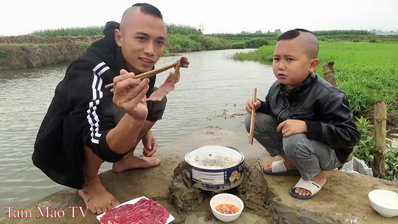 Tim Bò Nướng Kiểu Mông Cổ - Nấu Ăn Bên Bờ Suối Cười Há Mồm Với Mao Đệ