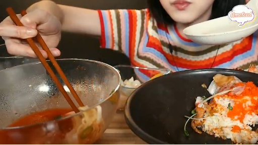 Cơm cá hồi, sushi cá hồi, kim chi trắng, canh rong biển 4 #amthuc