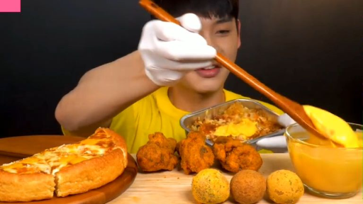 asmr-mukbang đùi gà hotdog mì siêu cay