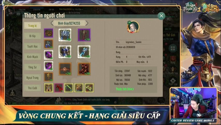 VÕ LÂM 1 MOBILE- CẦM ACC TOP1 S190 -SÁT THƯƠNG CHÍ MẠNG 300% CẤP 79 QUẪY TỐNG KI
