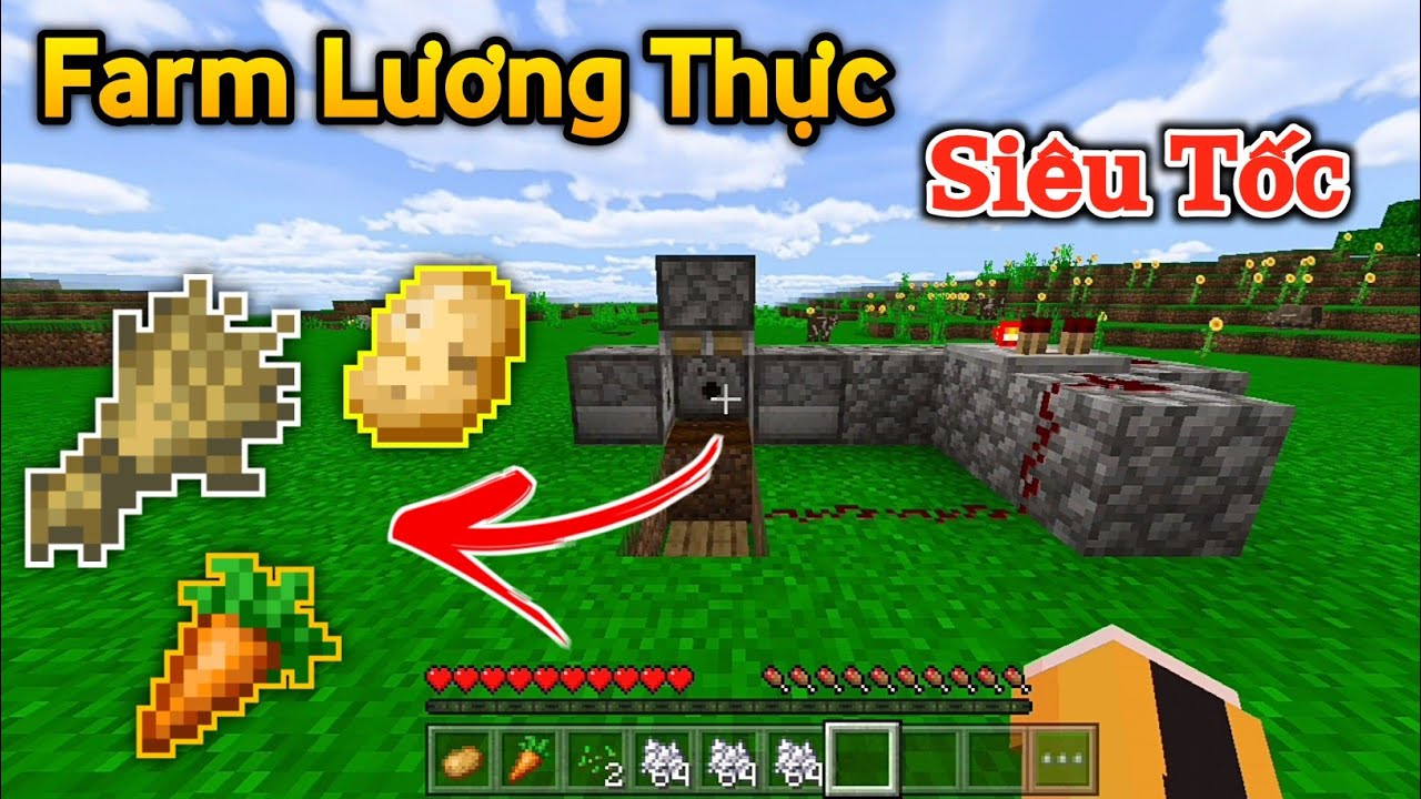 Cách Làm Máy Farm Lúa Tự Động Trong Minecraft PE | Máy Farm Lúa Tự Động Bằng Dân Làng MCPE