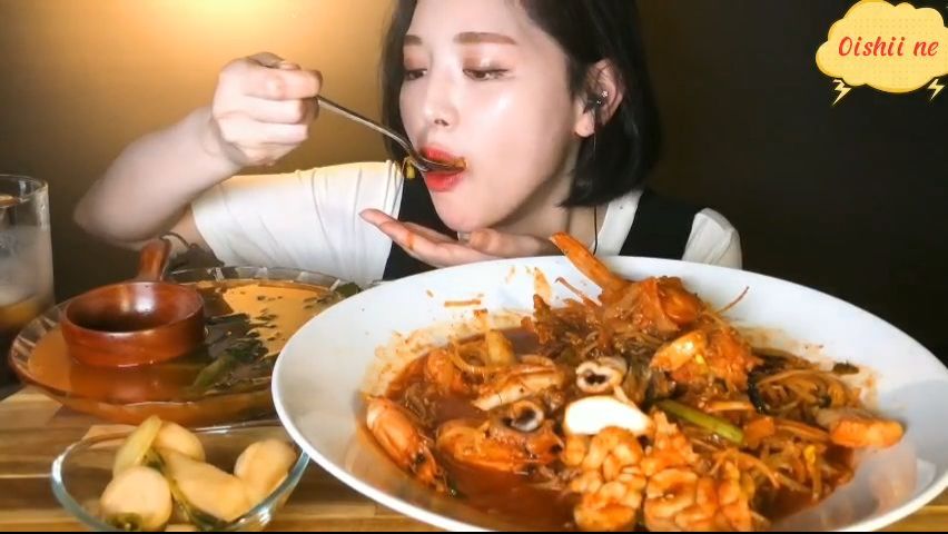 Mì tương đen hải sản, tôm chiên cay 3 #amthuc