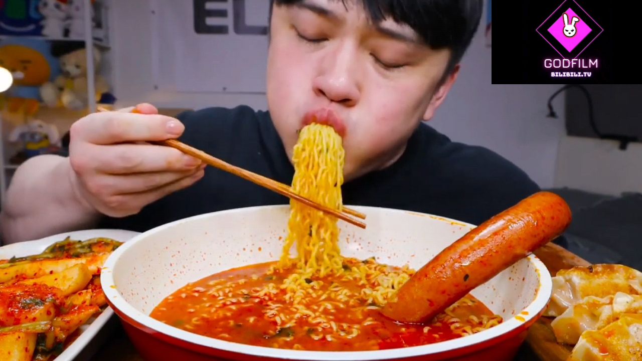 Mukbang mì, đùi gà sốt cay và phomai que #anngon