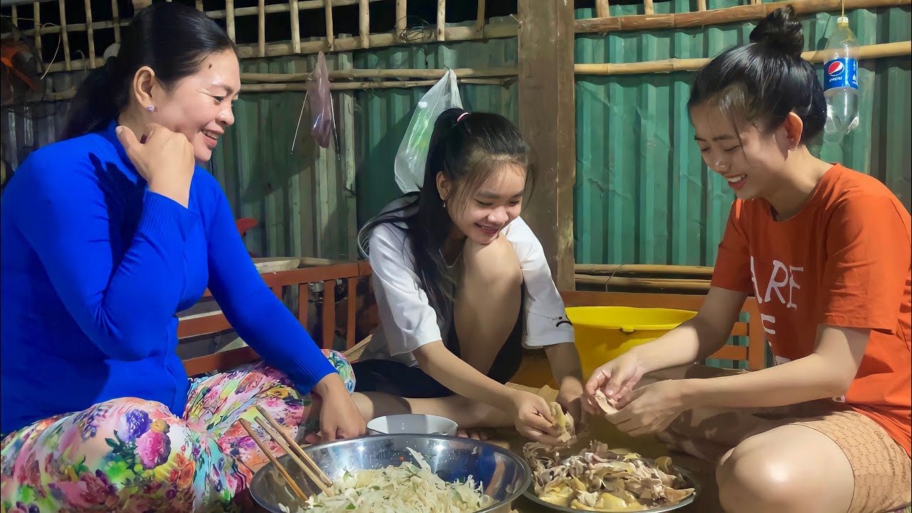 Chợ Quê Nhộn Nhịp Mấy Chị Em Mua Được Vài Con Cá Lóc Về Chiên Xá Xíu Cuộn Rau Sống | NĐMT#202