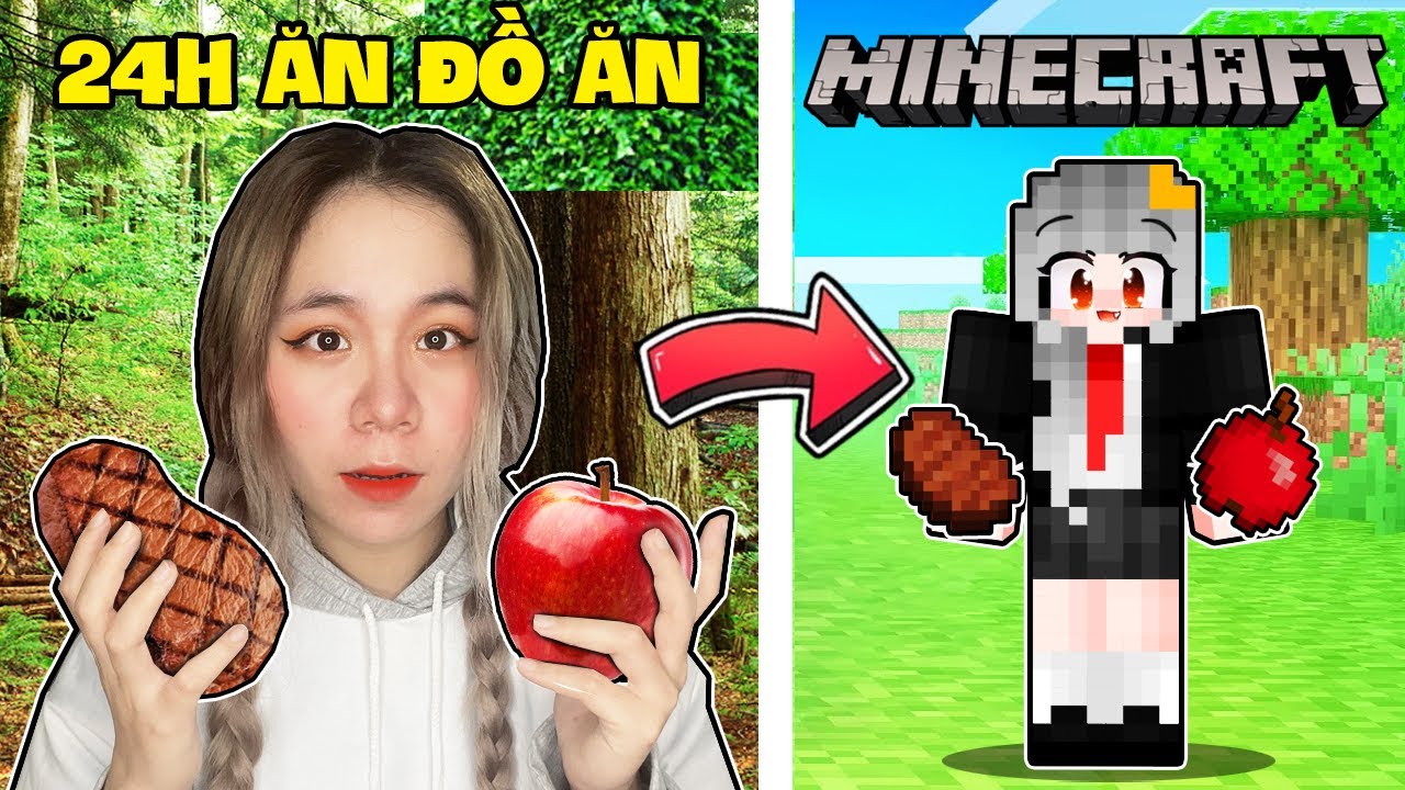 SAMMY THỬ THÁCH 24H ĂN TẤT CẢ ĐỒ ĂN TRONG MINECRAFT NHƯNG NGOÀI ĐỜI