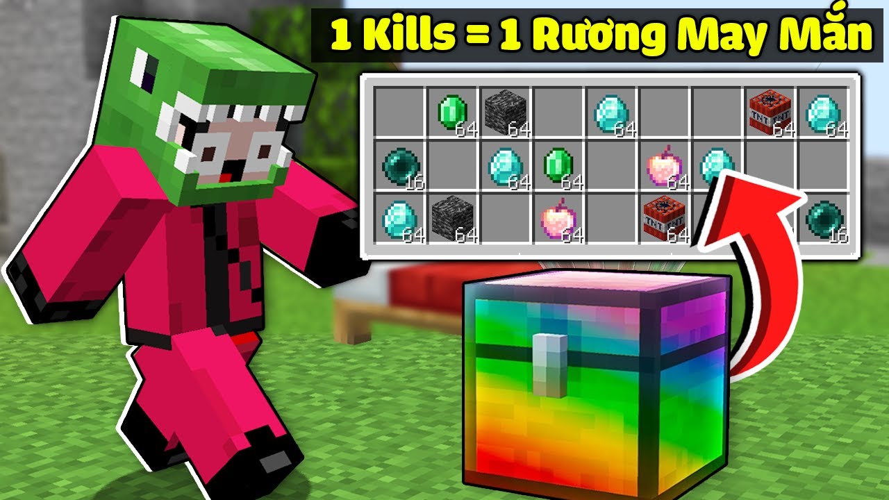 Minecraft Bedwars, Nhưng Ăn Sẽ Được Những Vật Phẩm PVP Ngẫu Nhiên Siêu Vip Troll Noob Team