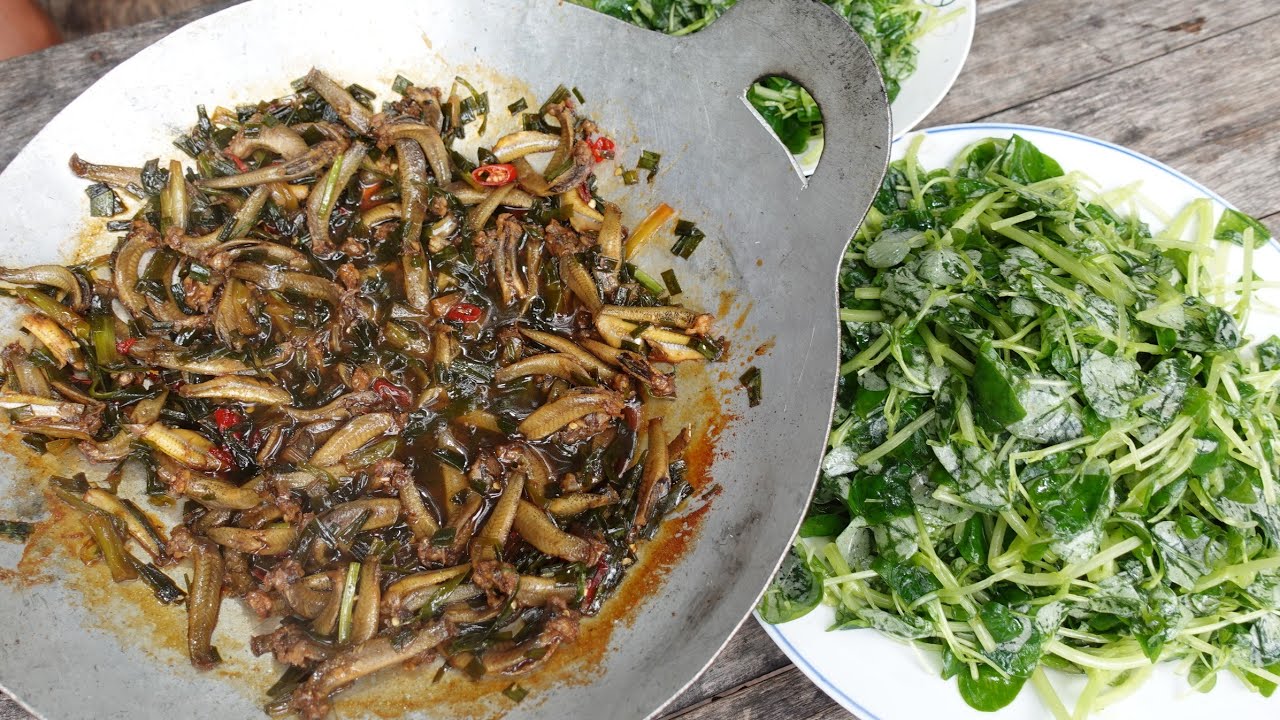 Đặt chai kiếm ít tép. Tép rong chiên bột cuốn lá cách - Bin Đen Miền Tây # 119