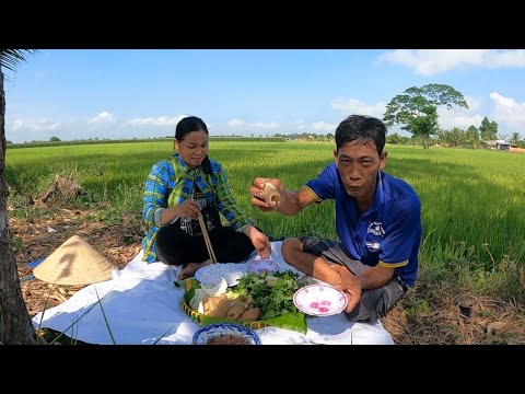 vợ chồng Tư bắt cua luộc ăn tại chỗ quá vui