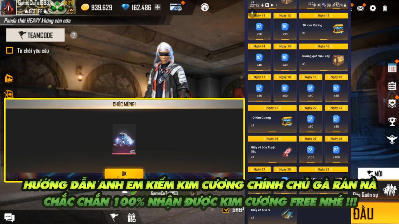 FREE FIRE | HƯỚNG DẪN ANH EM KIẾM HƠN 100 KIM CƯƠNG MÀ CHỈ CẦN ĐĂNG NHẬP LÀ NHẬN ĐƯỢC !!!