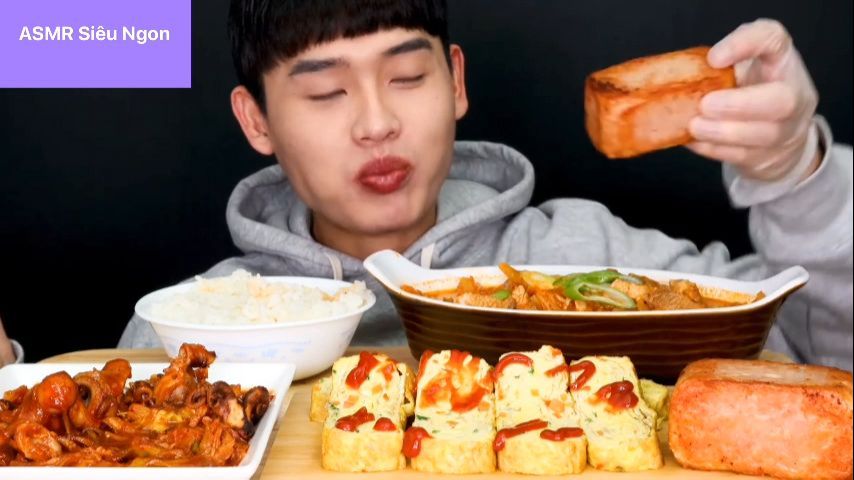 MUKBANG ASMR ăn mì cùng mực cuộn #amthuc #monngon